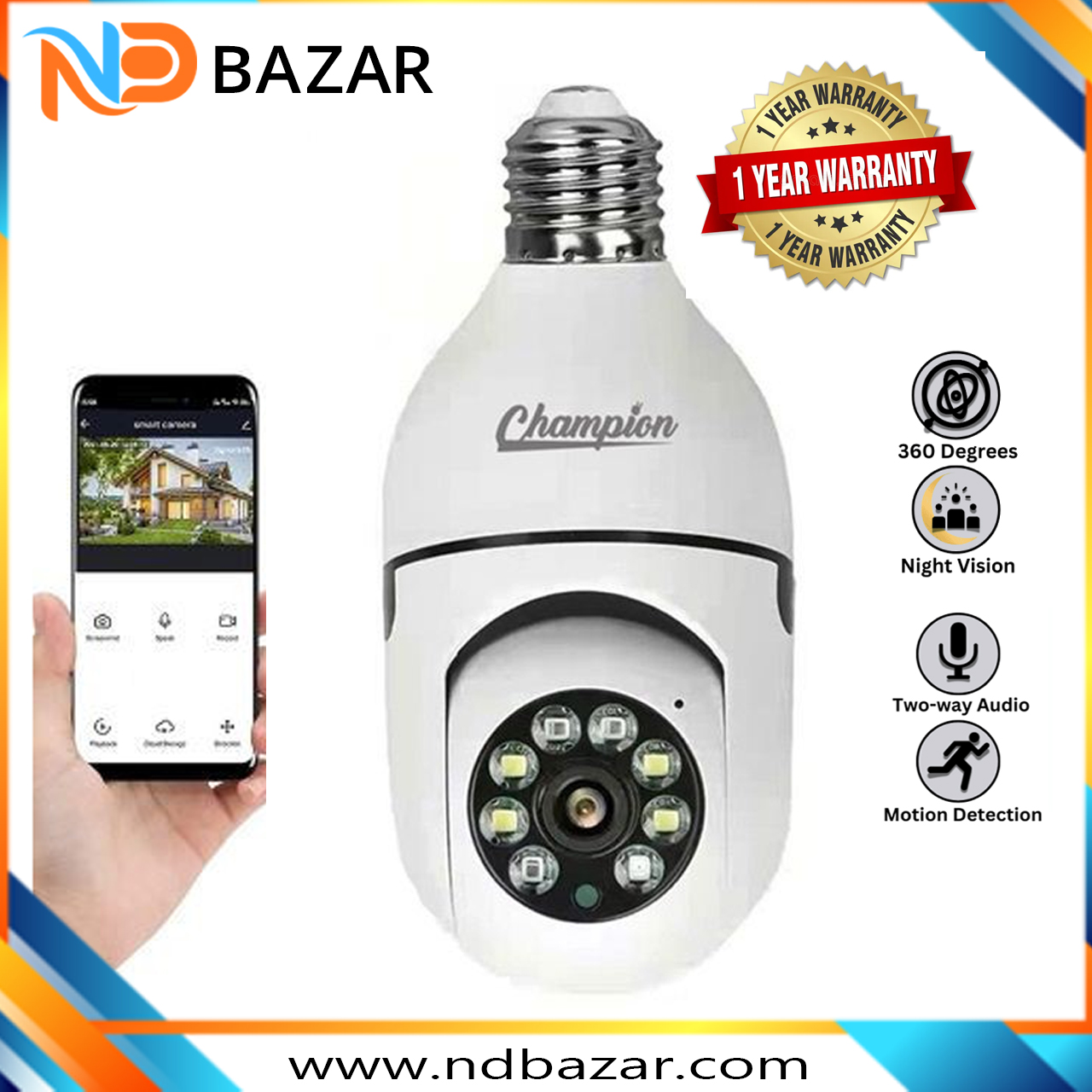 3Mp V380 Pro Champion Brand 1080p Full Hd Best Quality Bulb Holder Camera